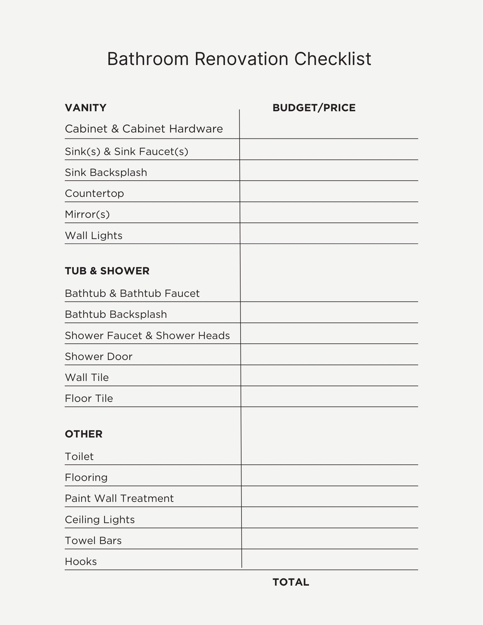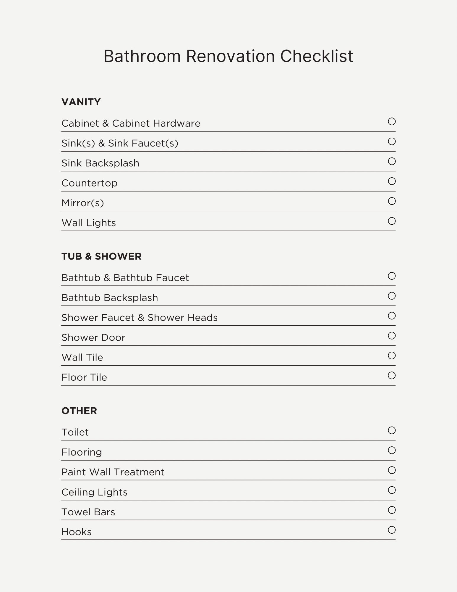 Bathroom Renovation Checklist